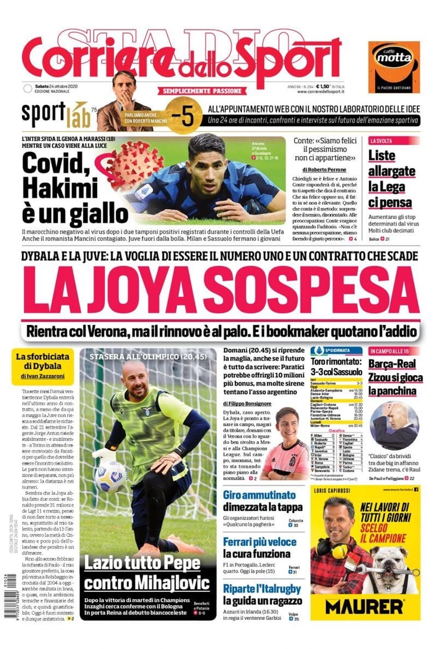 Противоречивые результаты теста у Хакими, из-за которого он не сыграл с «Боруссией», непростая ситуация с Дибалой в «Юве», а также ничья «Торино» и «Сассуоло» в первом матче тура – в утреннем обзоре заголовков итальянских спортивных изданий в блоге «В гостях у Кальчо».