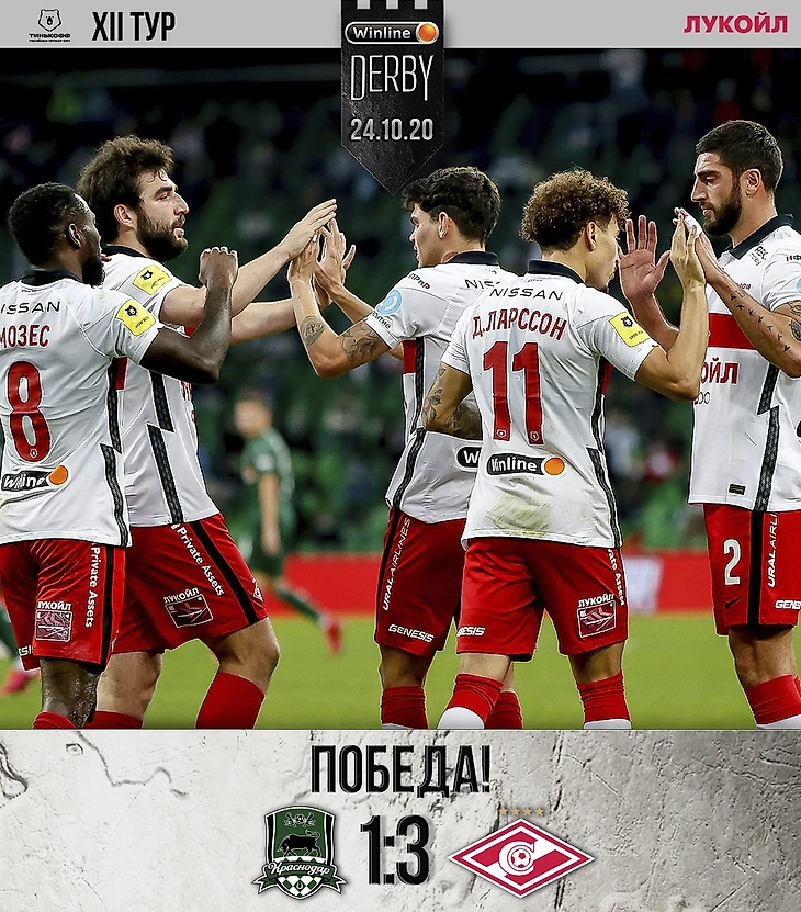 Красно-белые с 27 очками располагаются на первом месте в турнирной таблице чемпионата России, на втором месте — «Зенит» (24). «Краснодар» — 18 баллов и 8-я строчка.
