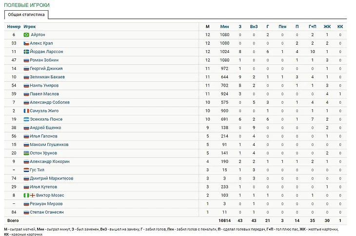Итак, в Российской Премьер-Лиге сегодня заканчивается 12-й тур - грубо говоря, 40 % от общей дистанции мы прошли уже к концу октября. Причин подобной спешки, в общем-то, две: одна - зимний перерыв, ибо в силу погодных условий играть зимой не представляется возможным, в отличие от большинства европейских стран, вторая - попытка завершить сезон максимально рано (к 15 мая), дабы сборная успела подготовиться к важным матчам чемпионата Европы. Данную ситуацию с календарем вряд ли можно как-то изменить, поэтому воспримем это как нормальную реальность и просто посмотрим на статистику игроков «Зенита» по итогам прошедших 12 игр: