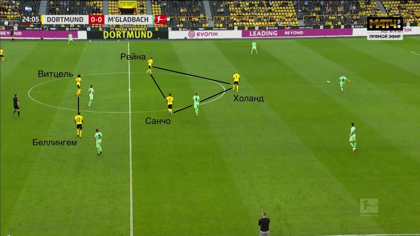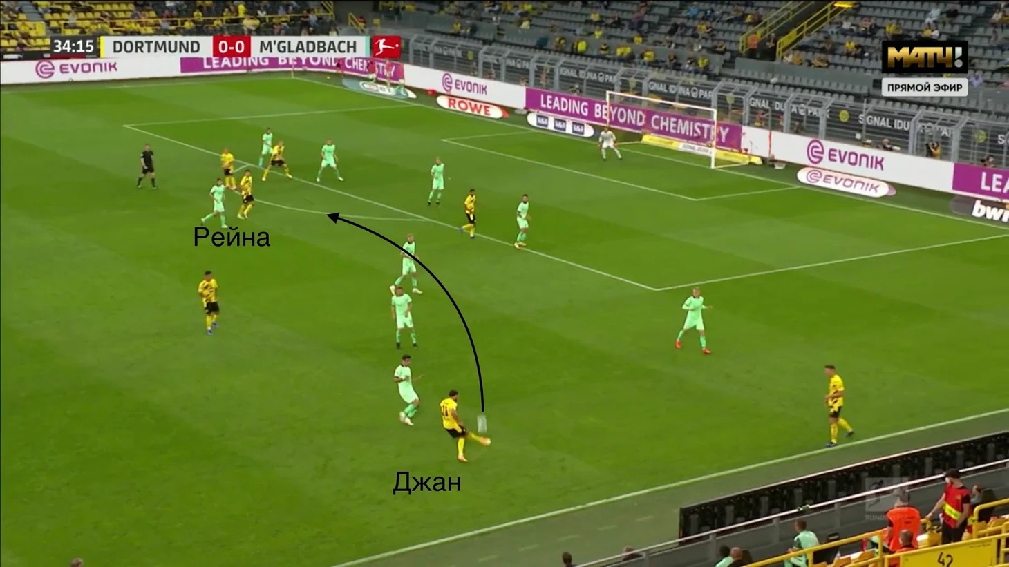 Хуммельс и Джан отвечают за креатив. Хуммельс отдает отличные передачи вразрез, которые вдвойне полезны из-за качественных открываний Рейны и Санчо между линий.