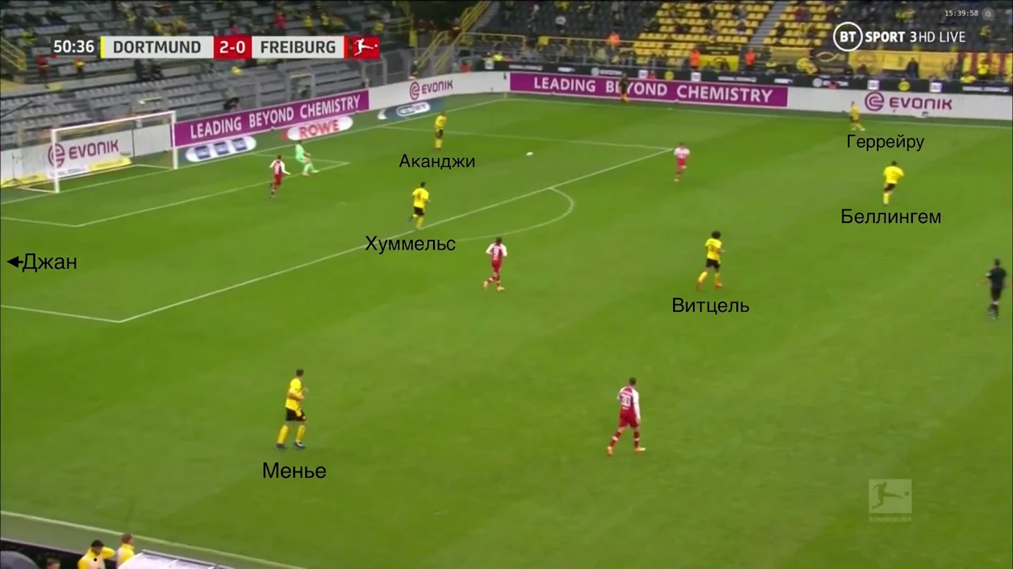 Здесь важны три футболиста: Аксель Витцель, Матс Хуммельс и Эмре Джан. Витцель выполняет роль диспетчера, обеспечивает постоянное движение мяча, но совсем не обостряет. Его 96,5% точности передач на старте сезона – абсолютная фантастика, даже если учитывать практически полное отсутствие пасов вперед.