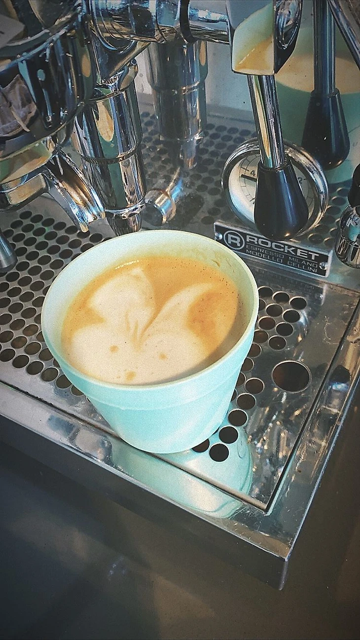 И даже пытается осваивать латте арт. Причем рисует он не только стандартные сердечки, но и кое-что сложнее, вроде вот такого милого кролика.