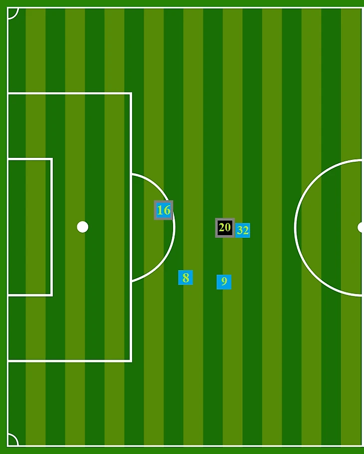 Расшифровка условных обозначений: 1) квадраты указывают на конкретные точки газона, с коих производили удары из-за штрафной площадки визави «Боруссии» (первая схема), и отношение данных «выстрелов» к створу ворот чёрно-жёлтых или областям возле «рамки» (вторая картинка); 2) цвет фигур свидетельствует о видах моментов, при которых были нанесены такие удары: голубой – в позиционном нападении, чёрный – вслед за ошибками защиты «шмелей»; 3) числа внутри четырёхугольников соответствуют игровым номерам футболистов Люсьена Фавра, разрешивших пробить по их воротам издали: 8 – М. Дауд, 9 – Эрлинг Холанд, 16 – Мануэль Аканджи, 20 – Рейньер, 32 – Д. Рейна; 4) серая окантовка квадратов означает попадание в створ.