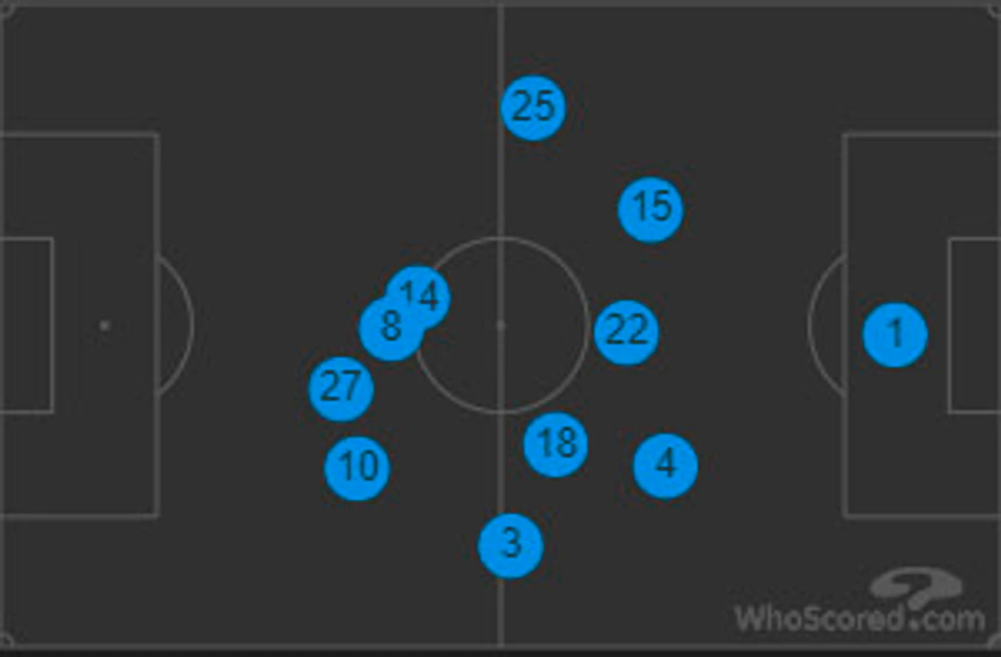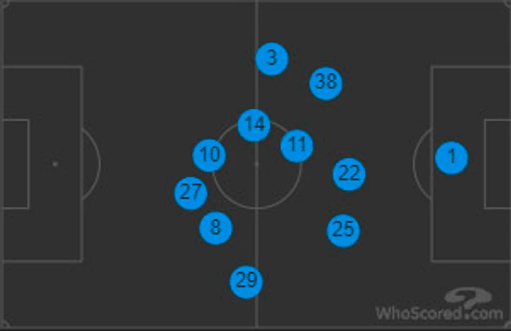 Кроме того, возможно, имеет смысл давать больше игрового времени Грилличу, который, несмотря на его большой объём работы, по-прежнему едва ли имеет статус одного из лидеров команды. Причём есть ощущение, что проблема не в том, что он по сути не оказывает существенного влияния на игру команды в финальной трети. Скорее, в тех случаях, когда он старается это делать, к примеру, эффективности его передач из глубины мешает недостаточная налаженность именно механизмов игры в атаке.