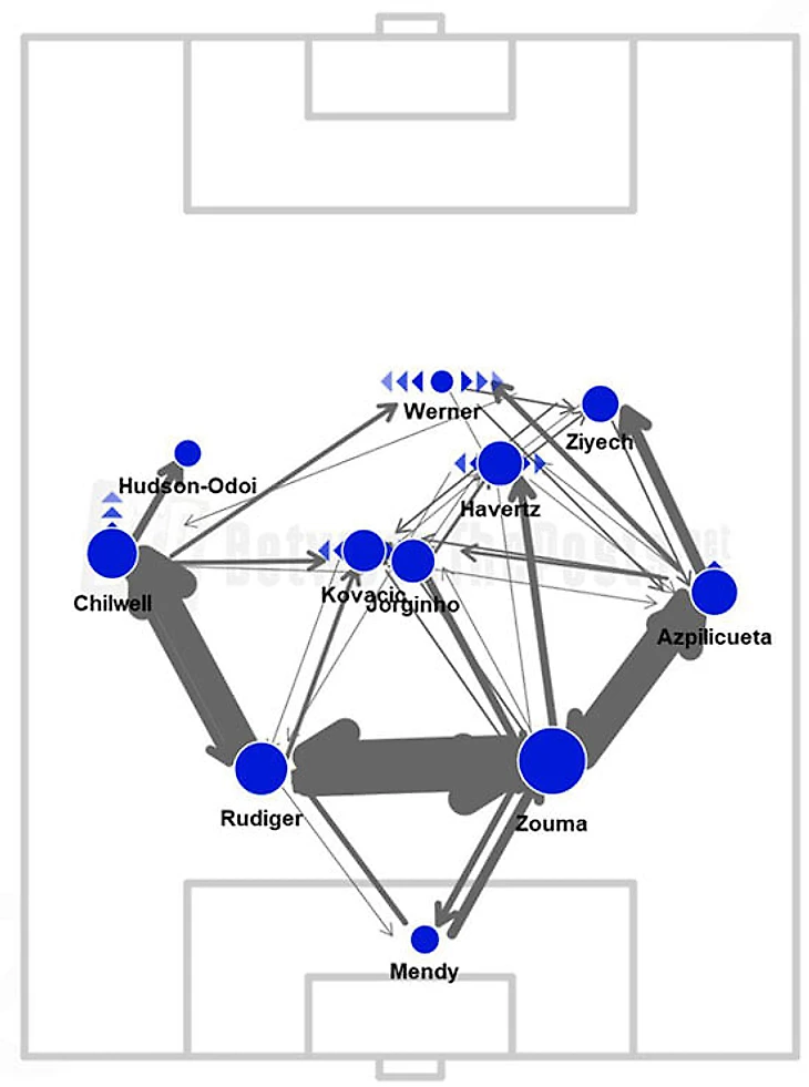 Карта передач «Челси». Чем жирнее линия, тем больше передач