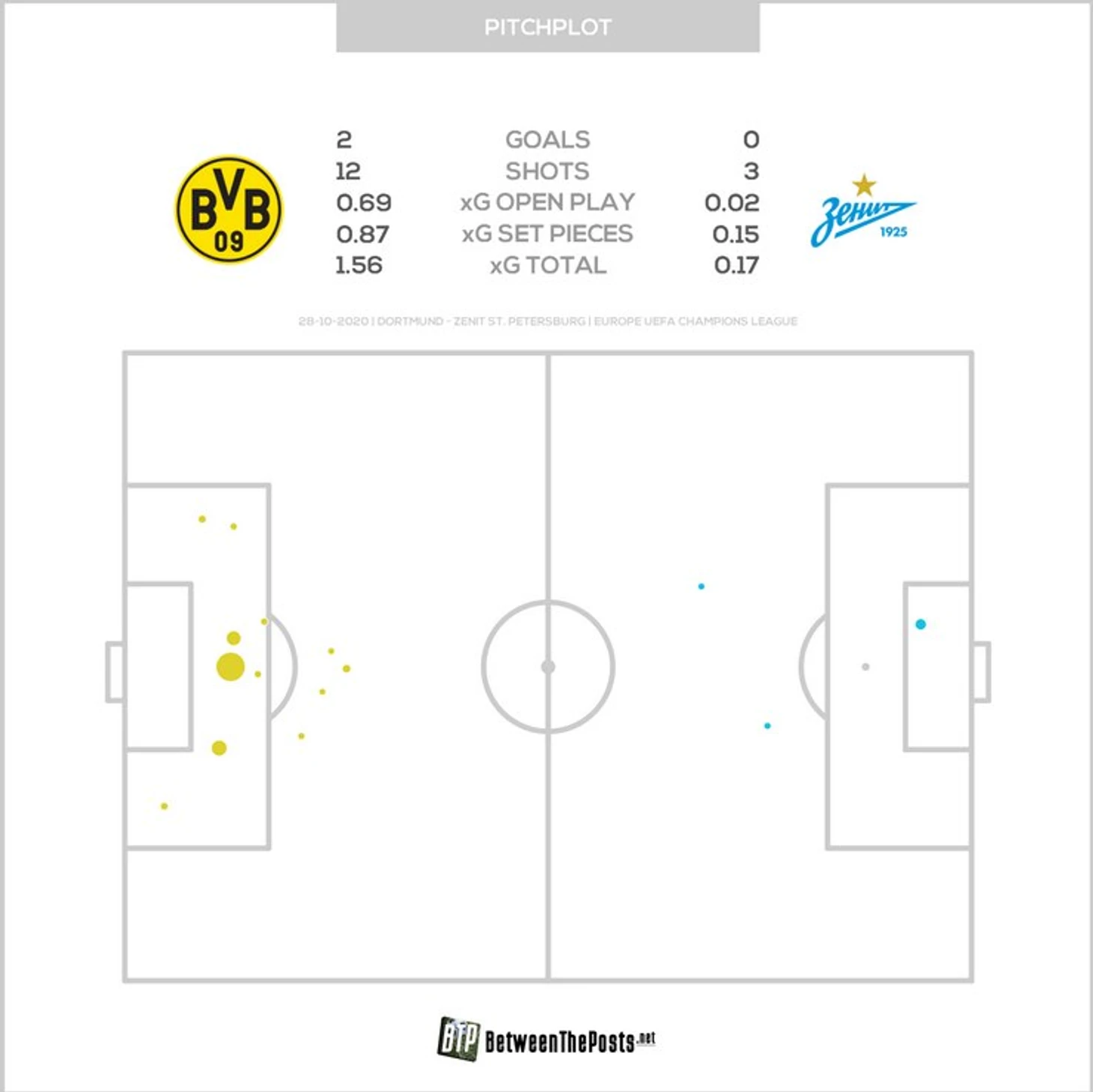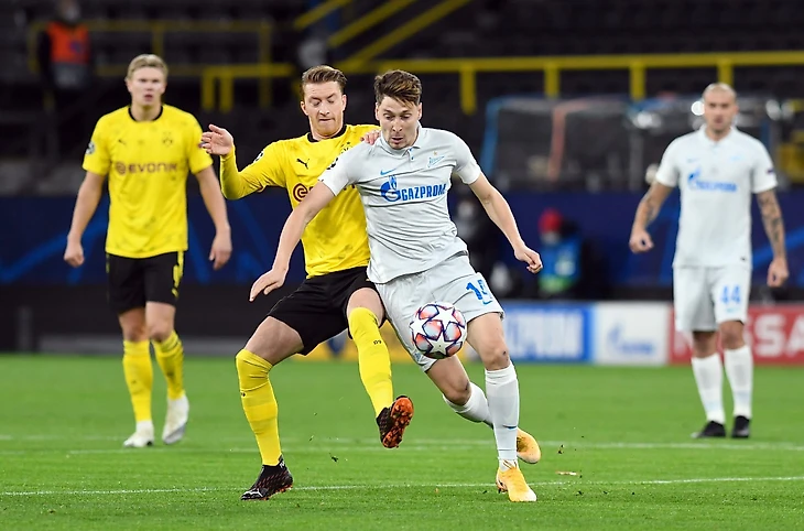 Весь первый тайм владение «Боруссии» было стерильным — редкие обострения возникали, когда «Зенит» ошибался в переходных фазах. «Шмели» не включали креатив в позиционке или не могли включить — дриблинг Санчо, Рейны и Ройса проходил слабо (4 успешные обводки за 45 минут), а низкий блок питерцев нивелировал открывания Холланда.