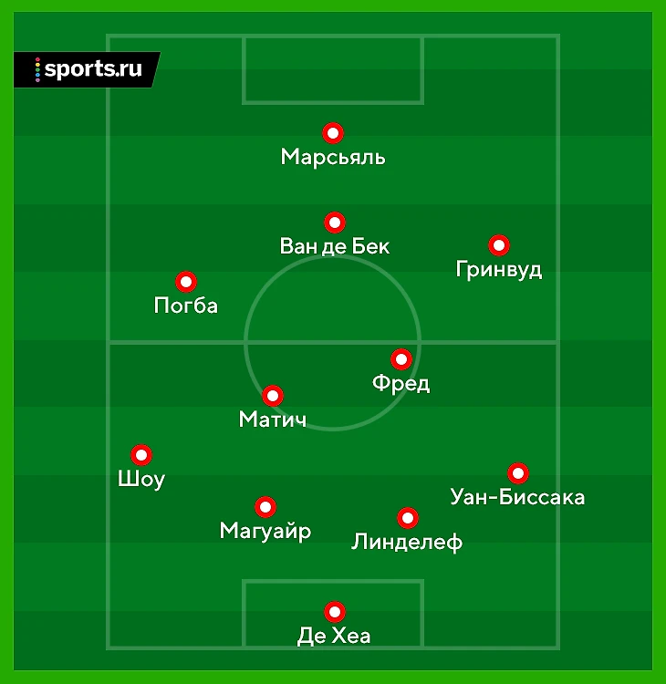 Сульшер уравнял игру – и тоже не заменами, а сменой схемы. Со второго тайма «МЮ» заиграл по 4-2-1-3 (так расшифровал систему сам норвежец). Пару опорников составили Матич и Фред, Гринвуд окончательно закрепился на правом фланге, а Погба привязали к левому. Ван де Бек остался десяткой, Марсьяль стал единственным нападающим.