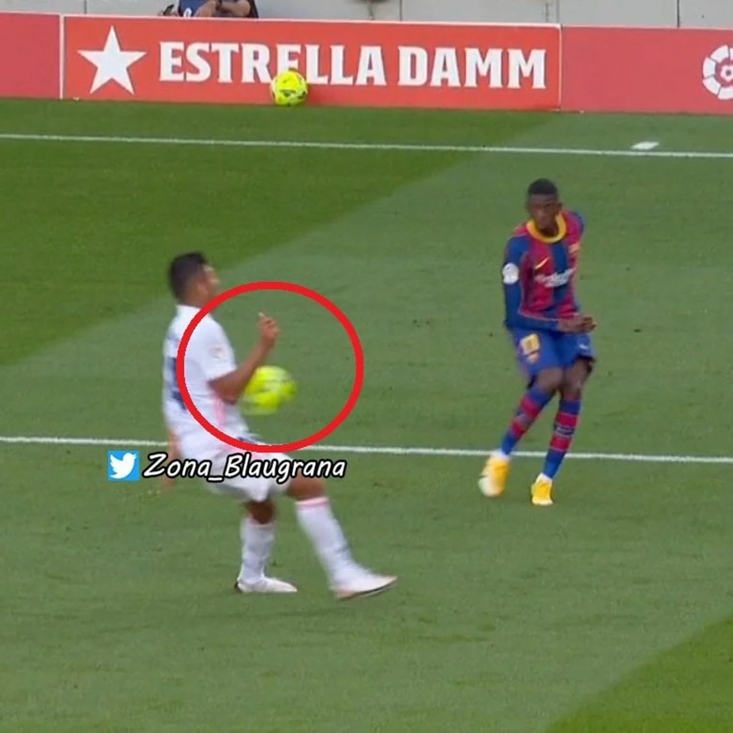 Также в матче с "Реалом" был еще один важный эпизод, когда в штрафной площади "сливочных" после удара Дембеле мяч попал в руку Каземиро и судья имел полное право назначить 11-метровый удар в ворота Куртуа. Однако, свисток главного рефери вполне ожидаемо промолчал.
