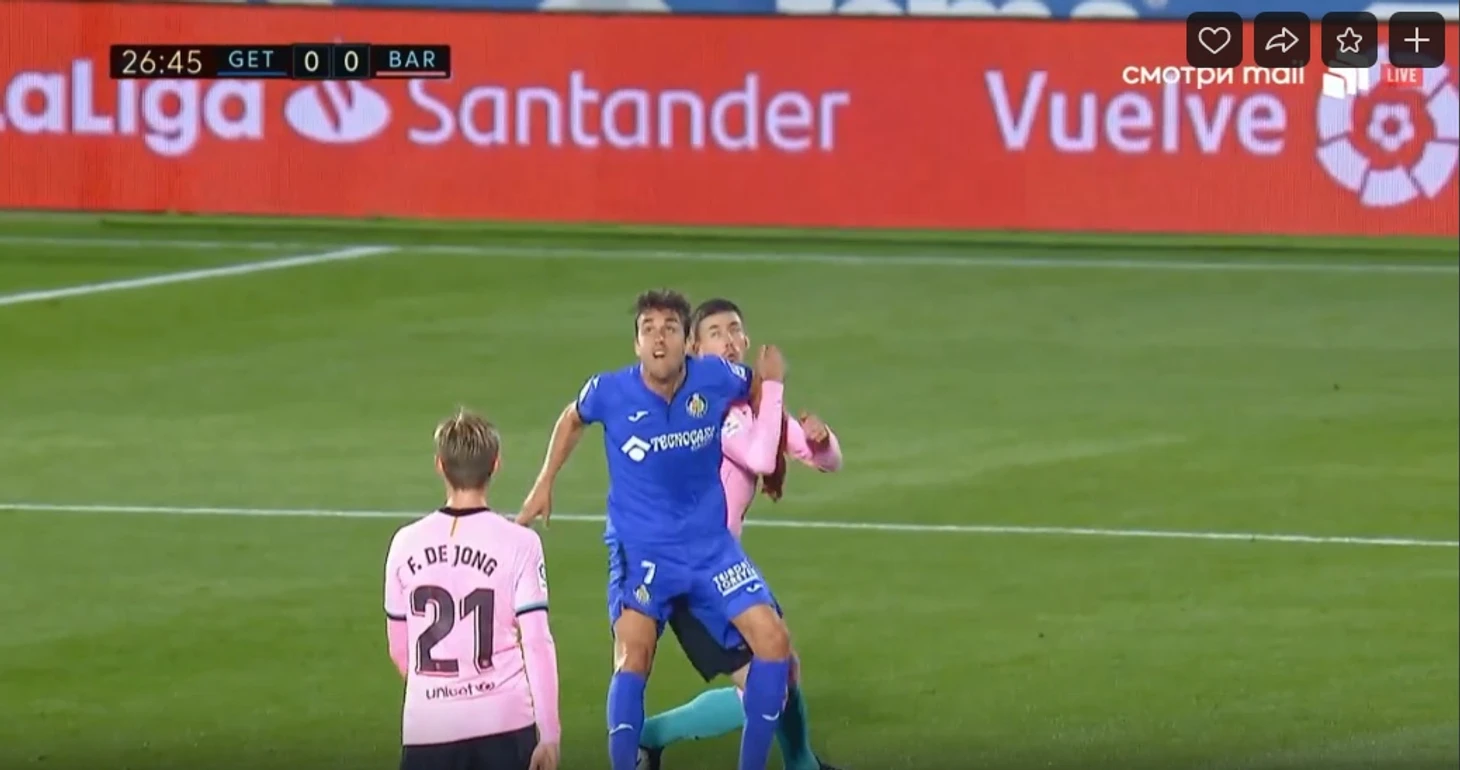 На 40-й минуте матча с "Хетафе" арбитр должен был удалять Ньома за удар локтем в лицо Лионеля Месси. На стоп-кадре хорошо видно, что рефери имел идеальную позицию для того, чтобы оценить данный эпизод. Это раз. Во-вторых, в подобных ситуациях должны были вмешаться ассистенты ВАР и предложить главному судье посмотреть этот момент на повторе.