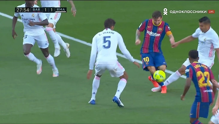 В середине первого тайма Каземиро врезался в ноги Лионеля Месси в штрафной площади мадридского "Реала". Пенальти 100%, но свисток арбитра промолчал.