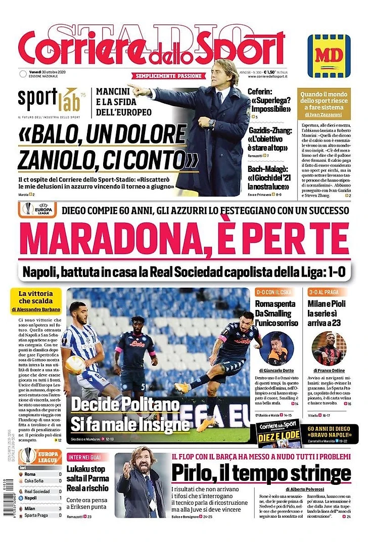 Марадона, это для тебя. Заголовки Gazzetta, TuttoSport и Corriere за 30 октября