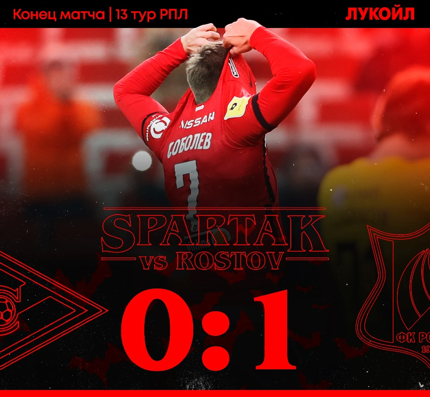 «Спартак» принимал «Ростов» в рамках 13-го тура Тинькофф чемпионата России. Гости одержали победу с минимальным счетом — 1:0.