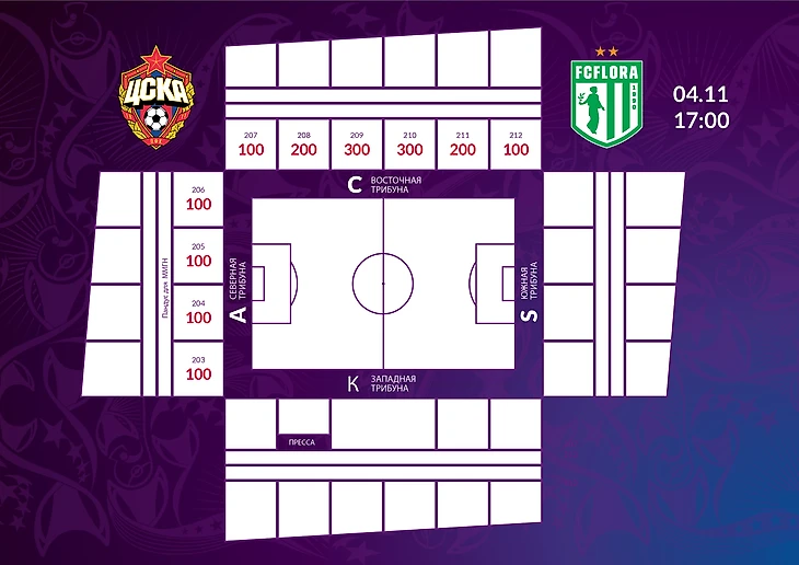 Билеты на трибуну С будут в свободной продаже. Особо обращаем ваше внимание на необходимость соблюдать социальную дистанцию при нахождении на территории стадиона и на трибунах, занимать место согласно билету. Ношение масок и перчаток также является обязательным условием. Зрители, отказывающиеся соблюдать данные требования, не будут допущены на стадион или могут быть выведены с трибун. Онлайн-сервис ПФК ЦСКА по продаже билетов