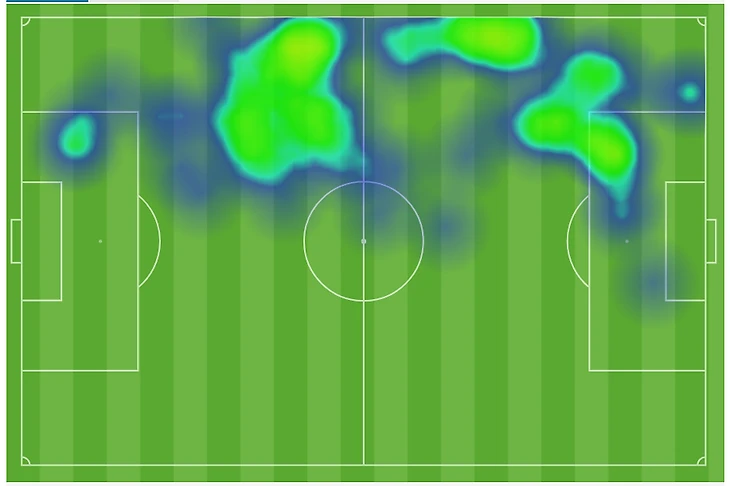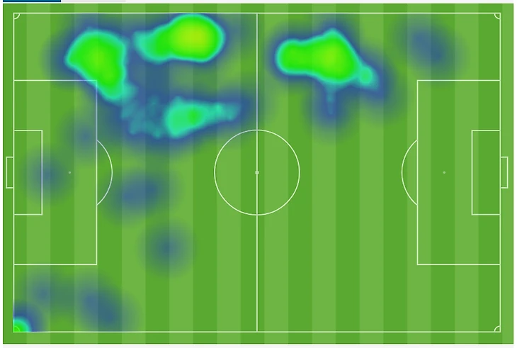 Химия Бельерина и Виллиана прослеживается через тепловые карты. Это Эктор – в стадии розыгрыша играет четко по флангу, а впереди позиция варьируется (часто – именно в опорной соперника играет):