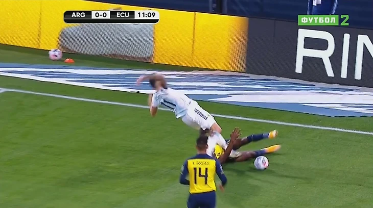 После стартового свистка игра началась достаточно спокойно, но уже на 6-й минуте пара Лаутаро Мартинес-Месси начала работать и показала, что давать сопернику так много свободы перед своей штрафной - это явно непродуманный вариант. Месси прошёл до лицевой с мячом, зафинтил на линии, пытаясь освободиться от сразу от 4-х защитников, сохранил мяч и катнул круглого под удар Лаутаро. И тут стало ясно, что эвадорцы играют с огнём - так ретиво отбирать мяч у Месси (да и у любого другого) в своей штрафной нельзя. Чилийский рефери Роберто Табар хоть и не имеет габаритов Нестора Питаны, но в Южной Америке пользуется непререкаемым авторитетом (судил финал последней Копы). Вобщем - справедлив, но и суров.