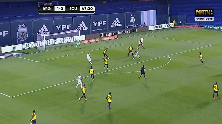 Во второй половине игра мало изменилась. На 48-й минуте Лаутаро получил навес от Паредаса, отлично скинул под удар Окампосу - Лукас должен был удваивать счёт, но плотный удар в дальний угол не получился и голкипер Эквадора перевёл на угловой.