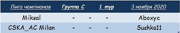 По итогу, 16 участников поделены на 4 группы. Каждый играет с каждым в один круг (третий - пятый туры реальной ЛЧ) Шестой тур будет резервным, на случай форс-мажора. Если обойдется без сюрпризов, сыграем товарищеские контрольные матчи.