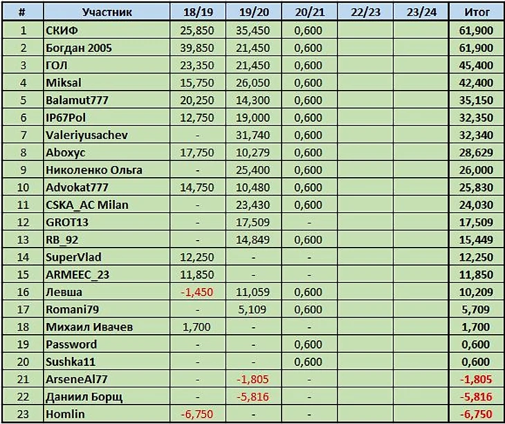 Важный момент по общей таблице! Так как турнир начинается с третьего тура, все индивидуальные результаты за два первых тура учитываться в общем зачете не будут! (Как и активность/неактивность)