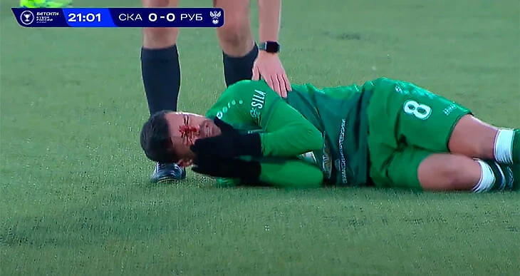 Главный момент встречи – не гол Гаджимурадова на 75-й минуте, а столкновение Владислава Брагина и Дарко Евтича на 22-й минуте. Нападающий СКА во время верховой борьбы зарядил полузащитнику «Рубина» локтем по лицу.
