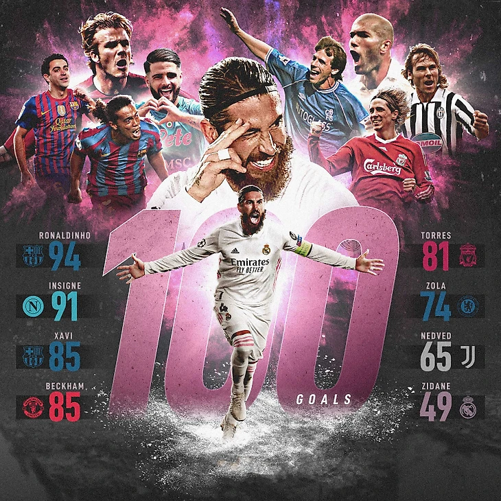 Серхио Рамос забил за один клуб больше, чем Роналдиньо, Лоренцо Инсинье, Хави, Дэвид Бекхэм, Фернандо Торрес, Джанфранко Дзола, Павел Недвед и Зинедин Зидан.