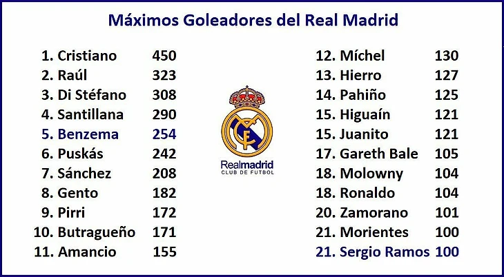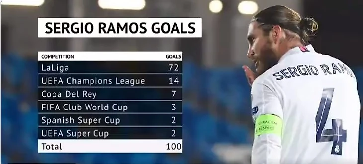 Рамос стал 22-м футболистом в истории «Королевского клуба», которым покорялась отметка в 100 забитых мячей