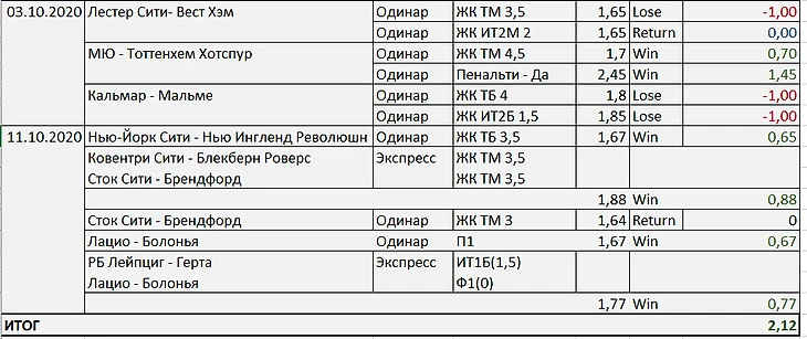3 игровых дня получилось отыграть в блоге и 2 последних из них были плюсовые. Итог 2,12 номинала к октябрю.