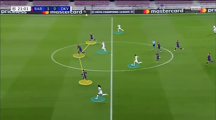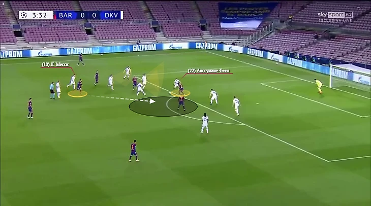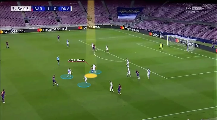Против Месси не играли персонально. «Динамо» действовало со строгой структурой, очень компактно. Это позволяло передавать аргентинца от игрока к игроку и контролировать его действия. Иногда за ним опускался Родригеш, который в этом матче очень хорошо работал на оборону. Получалось? Не совсем. Именно от Месси исходила основная угроза воротам Нещерета.