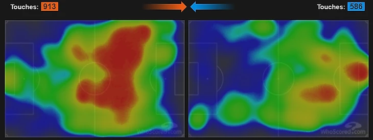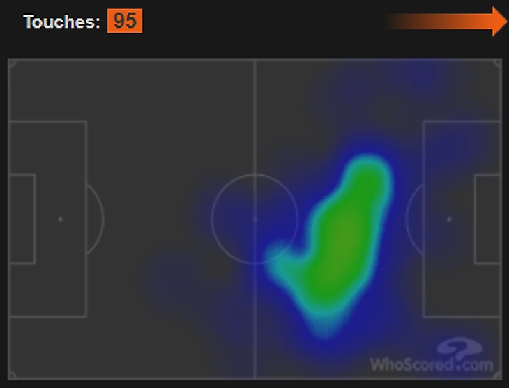 Вообще игру Лео в этом матче здорово иллюстрирует его тепловая карта. Он постоянно искал себя в центре поля, смещаясь туда с флангов. Месси стал лучшим игроком своей команды: точность передач 85%, два точных навеса с фланга, чаще всех бил по воротам (6/4), совершил больше всех обводок – 9/5.