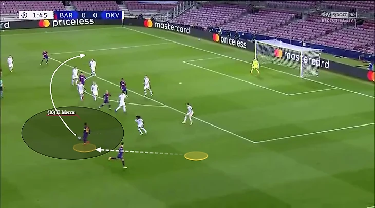 Лео был везде. Вот тут он смещается в середину, чтобы получить мяч: