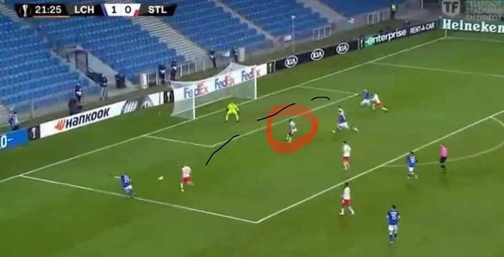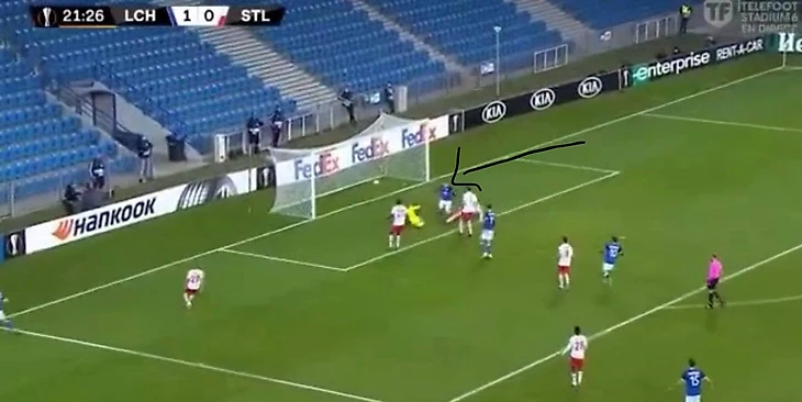 В эпизоде с голом Микаэля Исхака защитник "Стандарда" выполняет роль статиста, вместо того, чтобы сделать вынос мяча. Ну или перехват. Тимотеуш Пухач протаскивает мяч по флангу и выполняет прострел на шведского форварда, который уверенно посылает игровой снаряд в сетку. Взятию ворот не может помешать даже опекающий Исхака футболист.