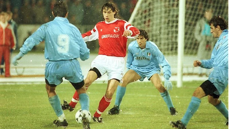 Им оказался «Наполи» с 30-летним, но еще боеспособным Диего Марадоной — весной он привел «Наполи» к чемпионству, а летом едва не взял золото чемпионата мира с Аргентиной.