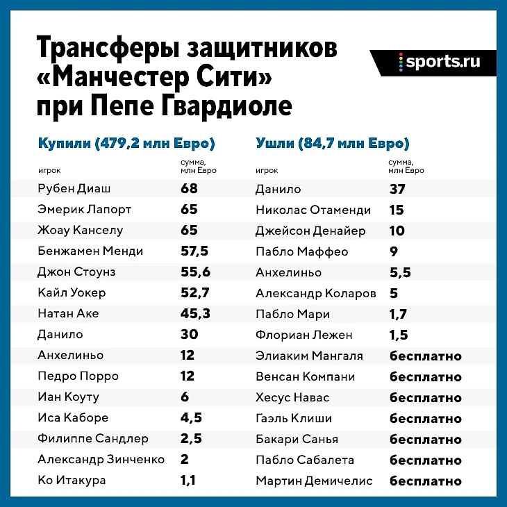 Практически 500 миллионов...И ведь по сути из них заиграл только Эмерик Ляпорт да Кайл Уокер. Всё остальные попросту провалились. Менди оказался слишком травматичным, Зинченко увы просто не тянет АПЛ, Канселу вобще для меня редко заметен, про Стоунза говорить не хочу. Про трансфер Родри из Атлетико (он брался как замена Фернандиньо), честно скажу - я вобще забыл про этого игрока. После ухода Компани наш лысый друг не выиграл серьёзного трофея (Кубок Лиги не считается), а насчёт победы в Чемпионате в этом сезоне я сильно сомневаюсь, Кубок Англии 50 на 50, ЛЧ вряд ли(тем более с такой виртуозной Баварией). С атакой в целом проблем нет, очень меня приятно удивляет Ферран Торрес, думаю с этим трансфером Пеп не прогадал. Парень очень мотивирован, а самое главное ничего не боится, за что ему уважение. Через года 2 этот парень может стать ключевым игроком нападения в Сити. Но за линию нападения я бы не стал переживать, там есть кем усилить игру и кому забивать тоже найдётся.