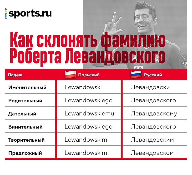 Пожалуй, один из самых бурных вопросов под постами и новостями про Роберта Левандовского (и других польских игроков) – нужно ли склонять его фамилию на русском. Одни удивляются, что на Sports.ru склоняют фамилии поляков, другие накидываются на удивленных.