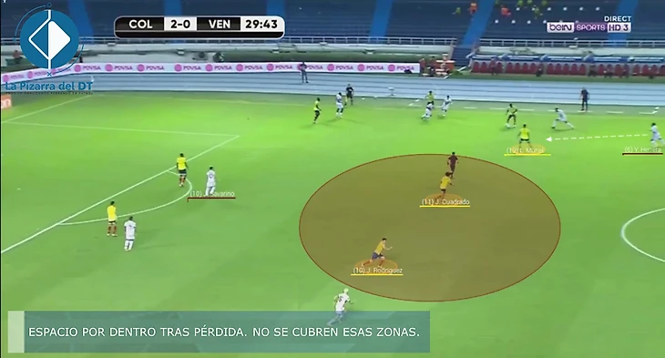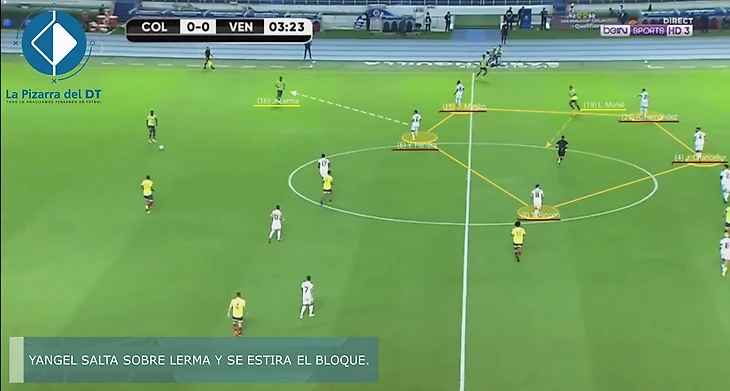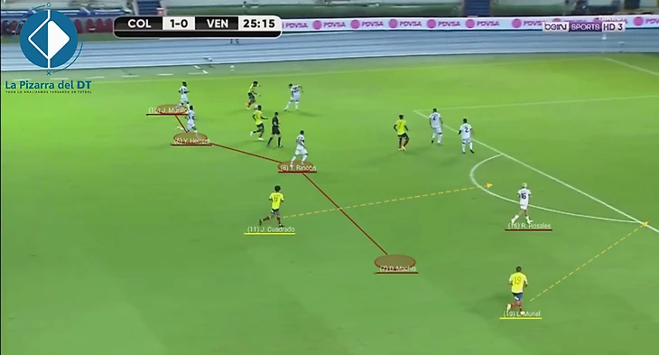 Но и при этом допускающая достаточно ошибок и дающая сопернику слишком много времени подумать и много пространства,чтобы задумки воплотить. Для серьезной команды позволять сопернику такое недопустимо. Но топовых опорников у Венесуэлы нет,а Ринкону уже 30 и он безальтернативен. Обратите внимание,сколько пространства у колумбийских центрхавов-прерии..