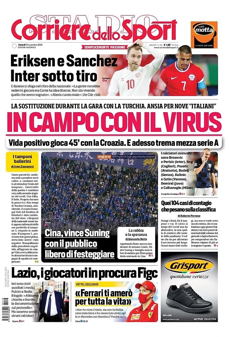 На поле с вирусом. Заголовки Gazzetta, TuttoSport и Corriere за 13 ноября