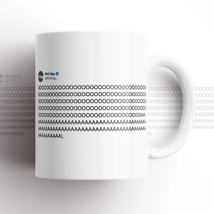 Трансферное окно — главный наркотик футбольного Twitter’а. Именно в его разгар родился мем «Any news, Phil?» («Фил, какие новости?») Это лишь один из мемов, начало которым положила моя скромная персона. Помимо этого я часто получаю сообщения «Shag me, Phil» («Трахни меня, Фил!»), когда «Лидс» забивает гол, и «Fuck off, Phil» («Иди на хер, Фил»), если приношу плохие новости. Ну и, конечно, мой знаменитый «голевой» твит. Я уже не помню, когда я написал его впервые, но теперь его печатают на кружках и продают через интернет.