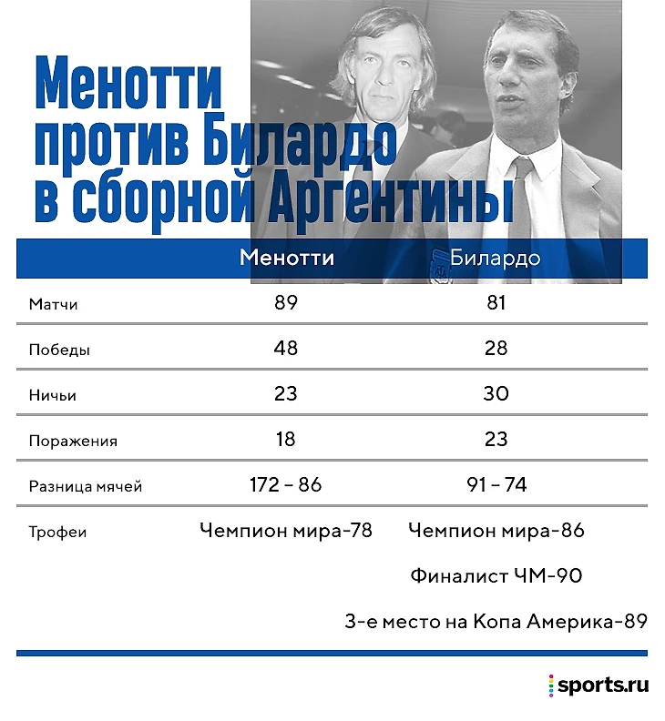 От редакции: в 85 лет умер Сесар Луис Менотти, тренер сборной Аргентины на триумфальном ЧМ-1978. Это легендарный человек в истории Аргентины. Вот текст Андрея Клещенка из 2020 года – о войне Менотти с Карлосом Билардо.