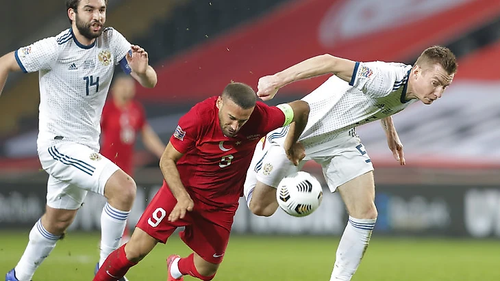 26 мин. - Турция - удар головой с близкой дистанции под углом к воротам (+75)