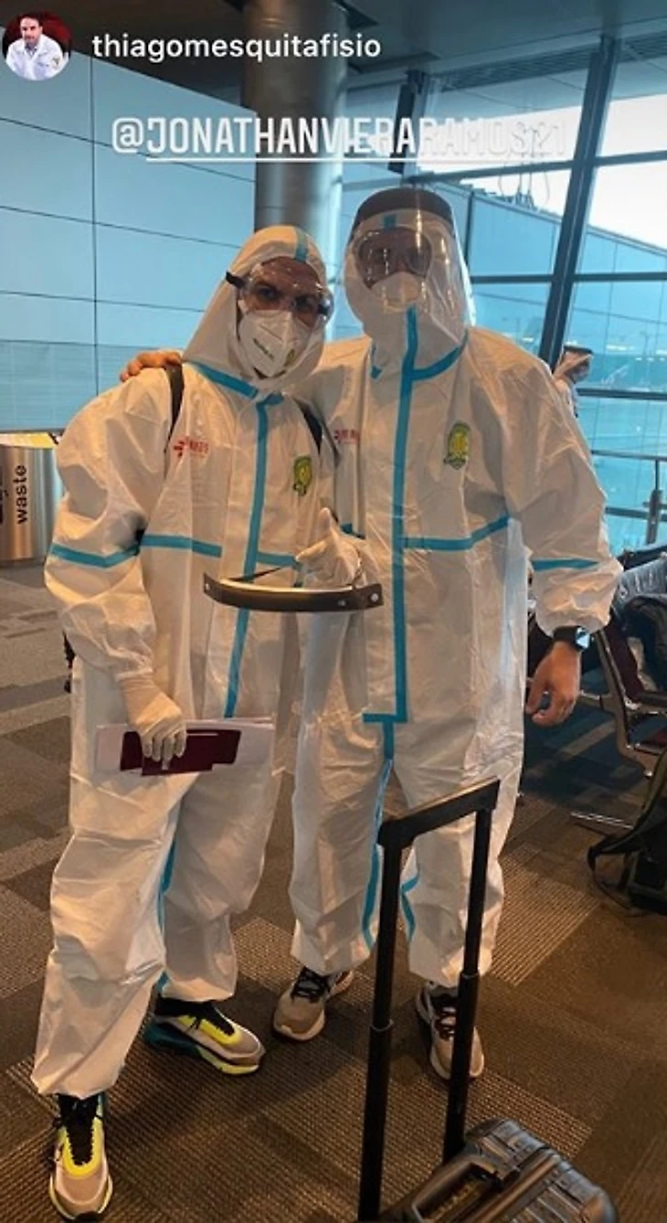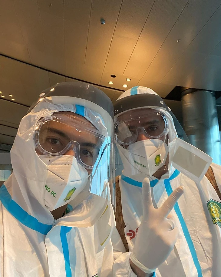 Вот так «Бэйцзин Гоань» прилетел в Доху. Где-то среди этих одинаковых людей в костюмах защиты есть бывший спартаковец Фернандо.
