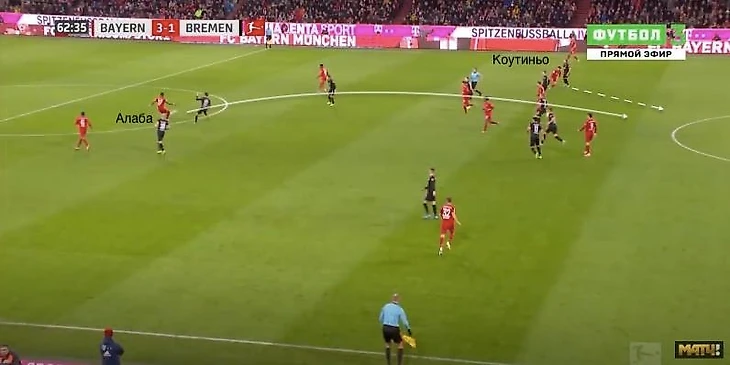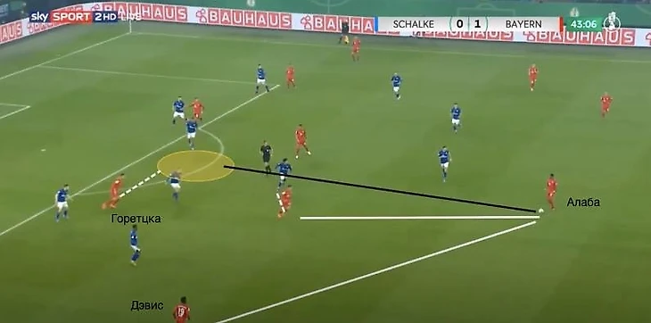 Особенно эффективны передачи Алабы против соперников, которые пытаются создавать искусственный офсайд (как в случае с «Бременом» выше).
