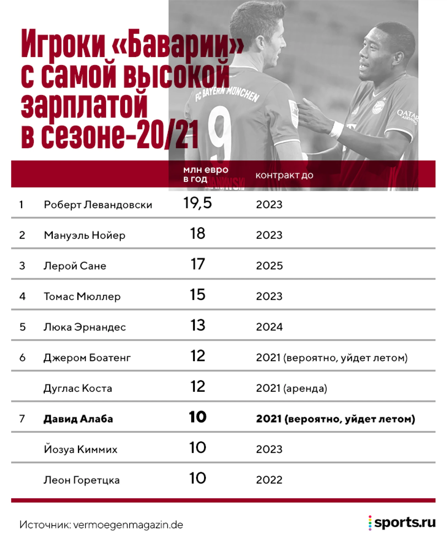 «В «Баварии» существует потолок зарплат, – объяснял спортивный директор клуба Хасан Салихамиджич в интервью Kicker. – Это Левандовски и Нойер. Не думаю, что Алаба ставит себя выше них».