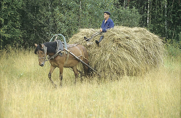 На границе штрафной площадки Михайловки стояла телега, груженная сеном. Как это часто бывает, сена было так много, что “подушка” возвышалась над телегой метра на три, венчаясь фигурой старика лет 60-ти в ватнике без рукавов. В то же время уморенную дорогой и жарой лошадь держал за поводья вратарь михайловчан. Кляча не особо рвалась продолжить путь, радуясь возможности короткого отдыха.