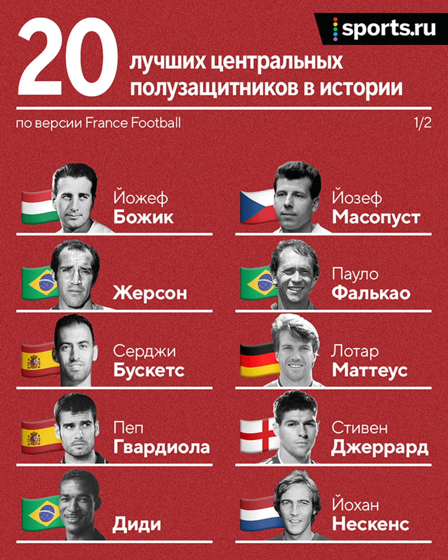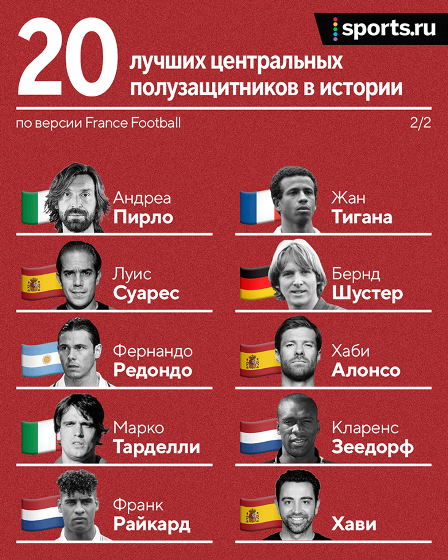 Обратите внимание: это будет более оборонительная двойка, атакующие центральные (например, Иньеста, Зидан и Тотти) будут в следующем голосовании.