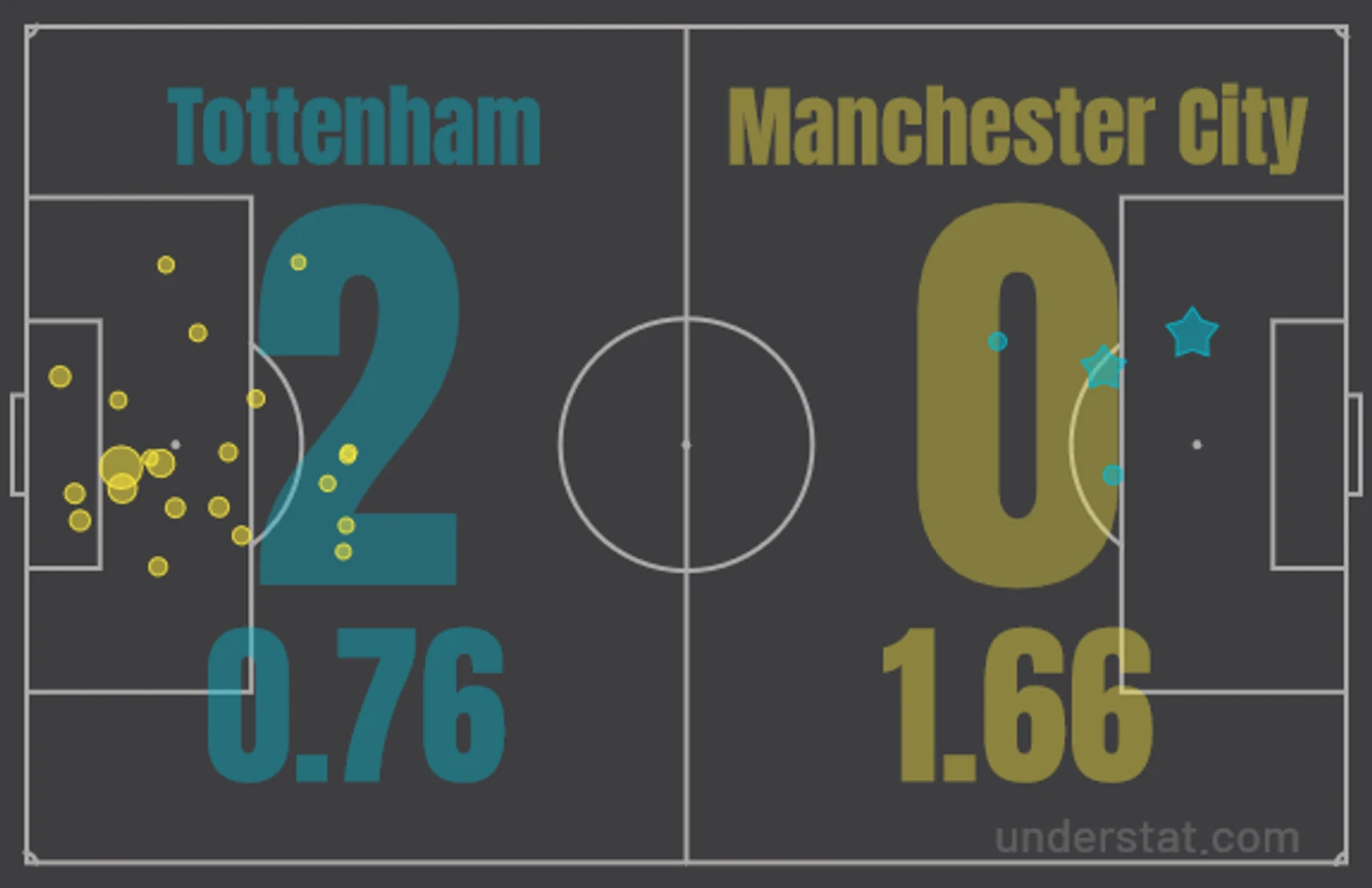 Кто не смотрел матч, но видел статистику, наверняка подумает, что «Сити» возил соперника: 22:4 по ударам, 12:1 в первом тайме. Но это обманчивое ощущение, контратаки «шпор» часто смотрелись гораздо опаснее.