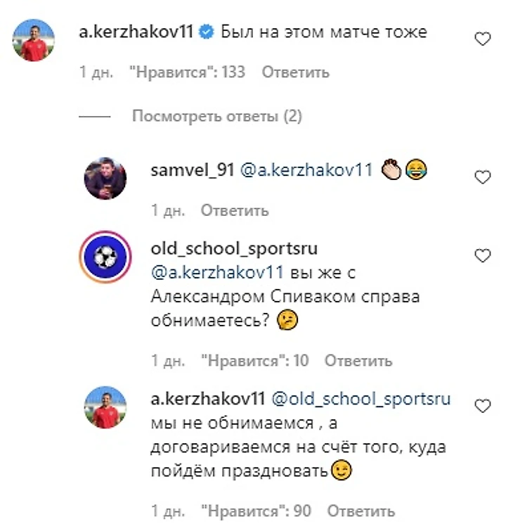 Ностальгией прониклись не только мы, но и футболисты того «Зенита»: в комментарии к посту в инстаграме о футболе старой школы залетел Александр Кержаков.