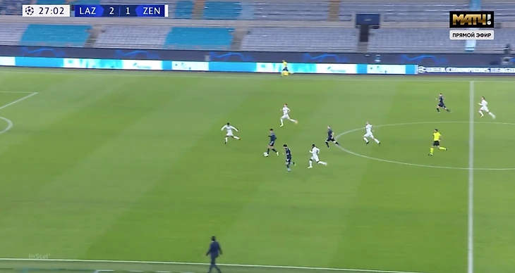На 27-й минуте Малком отметил дебют за «Зенит» в Лиге чемпионов обводкой Корреа и Лаццари после подбора с углового. Итог – потеря, рывок Корреа с мячом к штрафной Кержакова и спасение вратаря после удара Луиса Альберто.