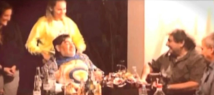 Но Джанинна переживала за отца, поэтому позже вернулась на вечеринку одна. Марадона уже лежал лицом в салате, из носа шла какая-то жидкость, а потом его вообще стошнило. Окружающих это мало волновало, все продолжали веселиться и танцевать вокруг, а кто-то даже пытался заставить Марадону задуть свечу.