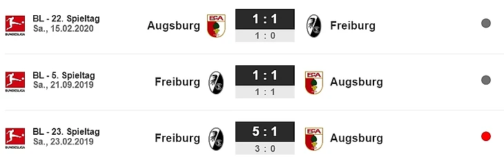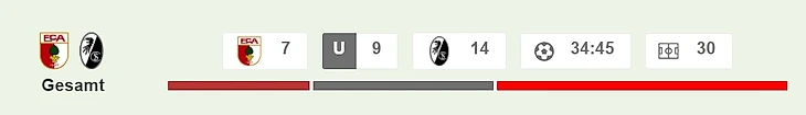 «Аугсбург» второй в лиге по числу мячей, забитых в заключительные 15 минут игры (5 голов, у «Фрайбурга» ни одного)