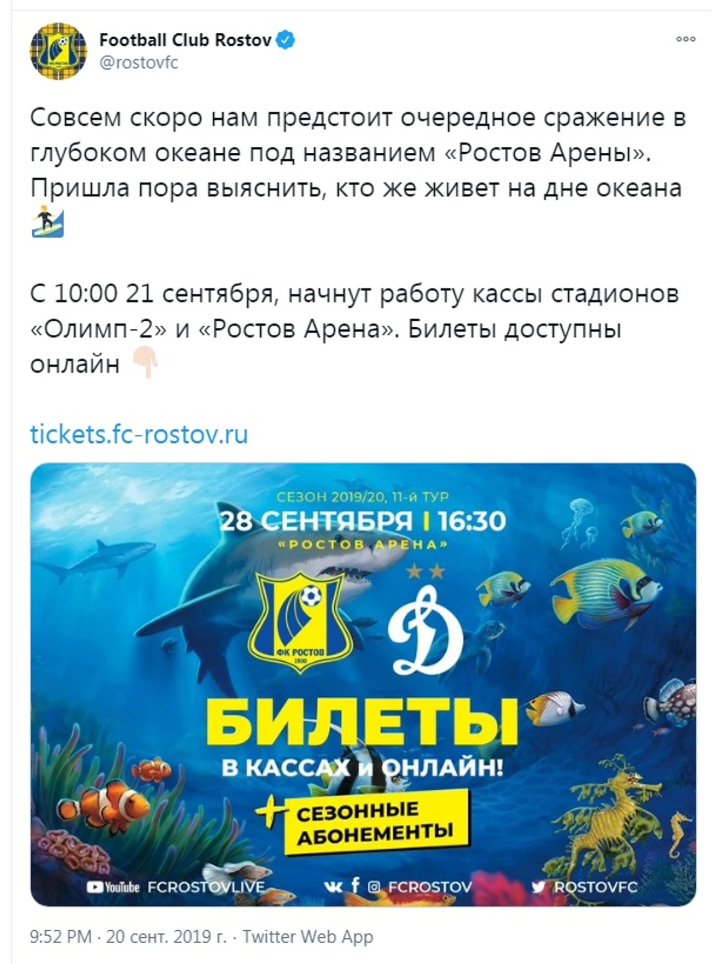 Прежде чем поразмыслить о шансах команд на положительный исход в субботней встрече, хочется вернуться на год назад и вспомнить " великолепный креатив" Ростова выложенный в твиттере: