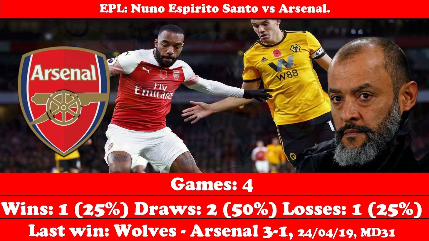 У Нуну Эспириту Санту с Арсеналом ровно, вплоть до разницы забитых и пропущеных.